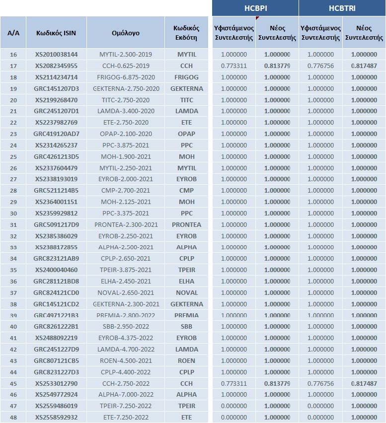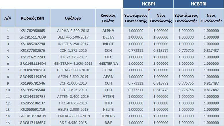 | Αλλαγές στη Σύνθεση των Δεικτών Ελληνικών Εταιρικών Ομολόγων | |||