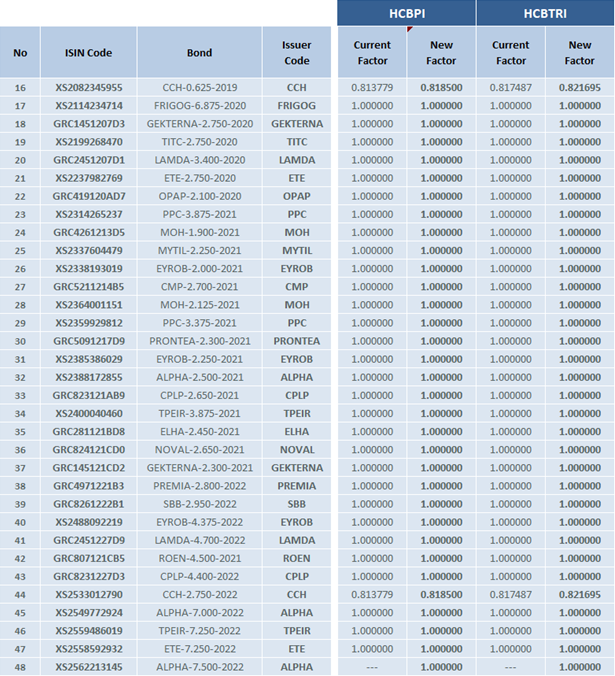 | Αλλαγές στη Σύνθεση των Δεικτών Ελληνικών Εταιρικών Ομολόγων | |||