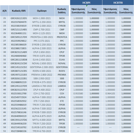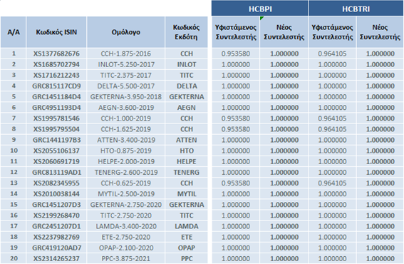 | Αλλαγές στη Σύνθεση των Δεικτών Ελληνικών Εταιρικών Ομολόγων | |||