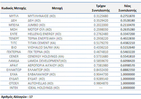 | Ελληνικός Δείκτης Mid & Small Cap - Νέοι Συντελεστές Στάθμισης Μετοχών | |||