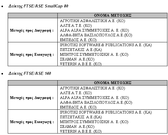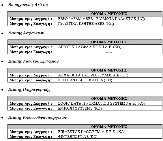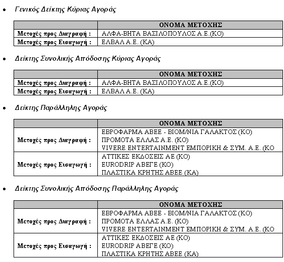 Αλλαγή στους Δείκτες του Χ.Α. λόγω Αλλαγής Χρονισμού