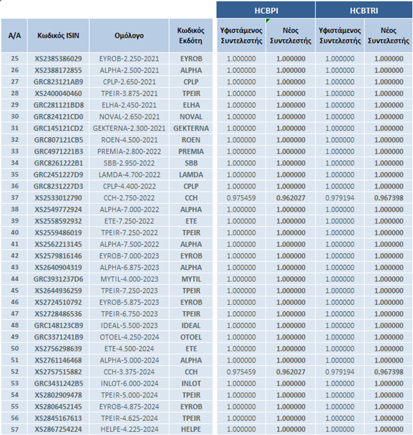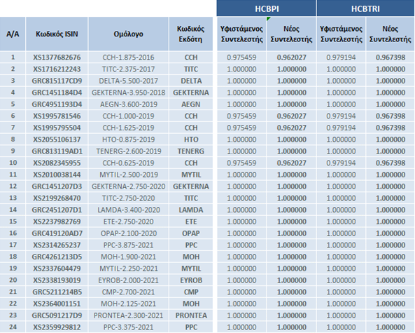| Αλλαγές στη Σύνθεση των Δεικτών Ελληνικών Εταιρικών Ομολόγων | |||
