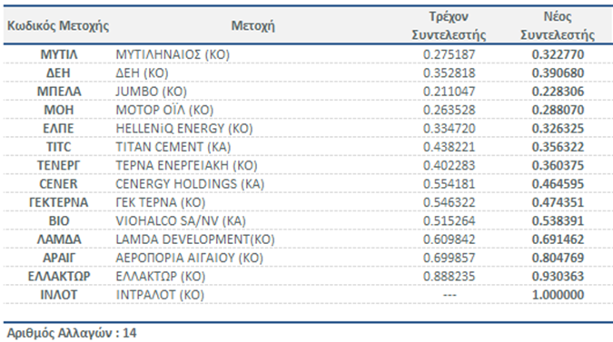 | Ελληνικός Δείκτης Mid & Small Cap - Νέοι Συντελεστές Στάθμισης Μετοχών | |||