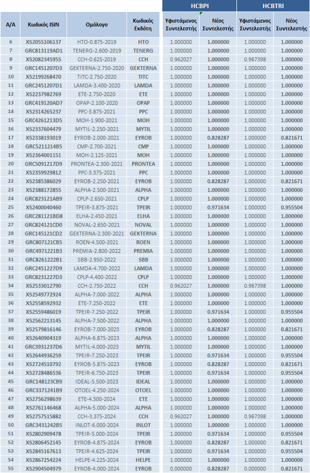 | Αλλαγές στη Σύνθεση των Δεικτών Ελληνικών Εταιρικών Ομολόγων | |||