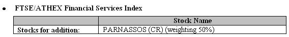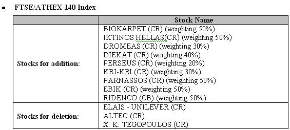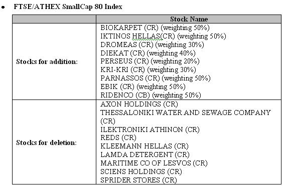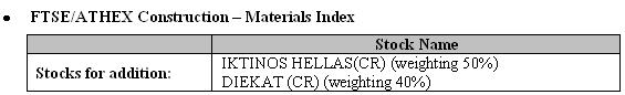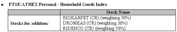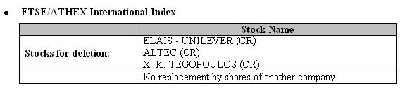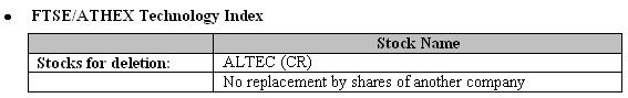 The aforementioned changes will be put into effect prior to the start of the trading session of the ATHEX on Tuesday, April 10, 2007.