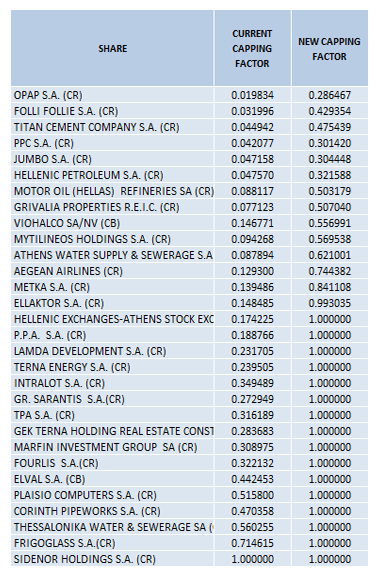 Athens Stock Exchange announces the new Capping Factors of the constituents of «Hellenic Mid & Small Cap Index» that will be effective as of Monday Friday March 6th 2015 Monday March 16th 2015 in accordance with the updated version of the Index Ground Rules.