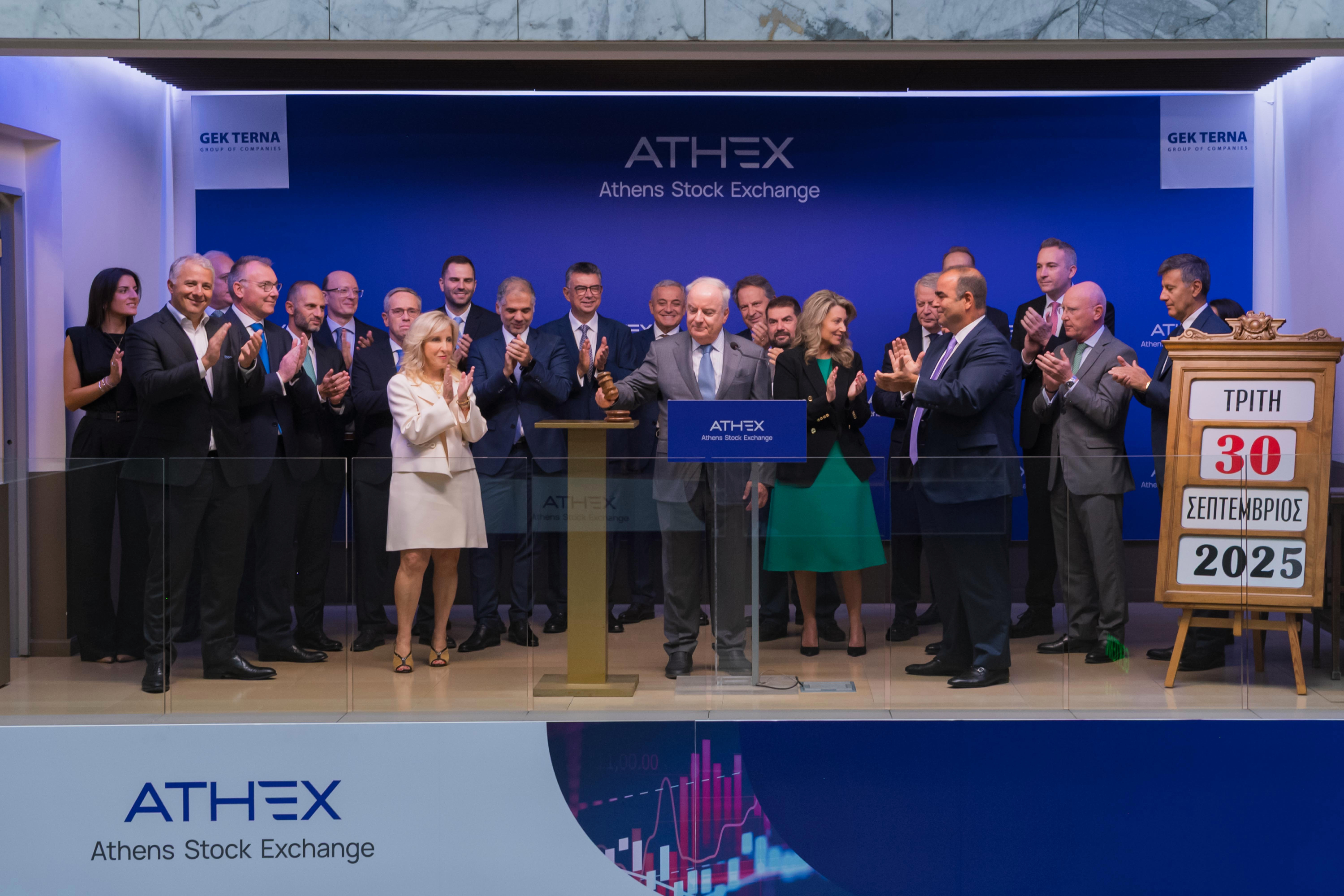 Welcoming the guests, the CEO of the Athens Exchange Group, Mr. Yianos Kontopoulos, highlighted the significant oversubscription of the public offering, which demonstrates the investors’ trust in the company and its prospects, adding: “GEK TERNA has been listed on the Athens Stock Exchange since 1969 and is a prime example of a company that consistently leverages the financing opportunities provided by the capital market, having raised a total of €1.64 billion since 1999 through share capital increases and bond issues. With respect to bond issuances, GEK TERNA has proceeded to four bond issues to date, amounting to €1.64 billion in total. We congratulate GEK TERNA’s management on this highly successful issuance and reaffirm that the Athens Stock Exchange will always stand by its listed companies in every step of their growth journey.”