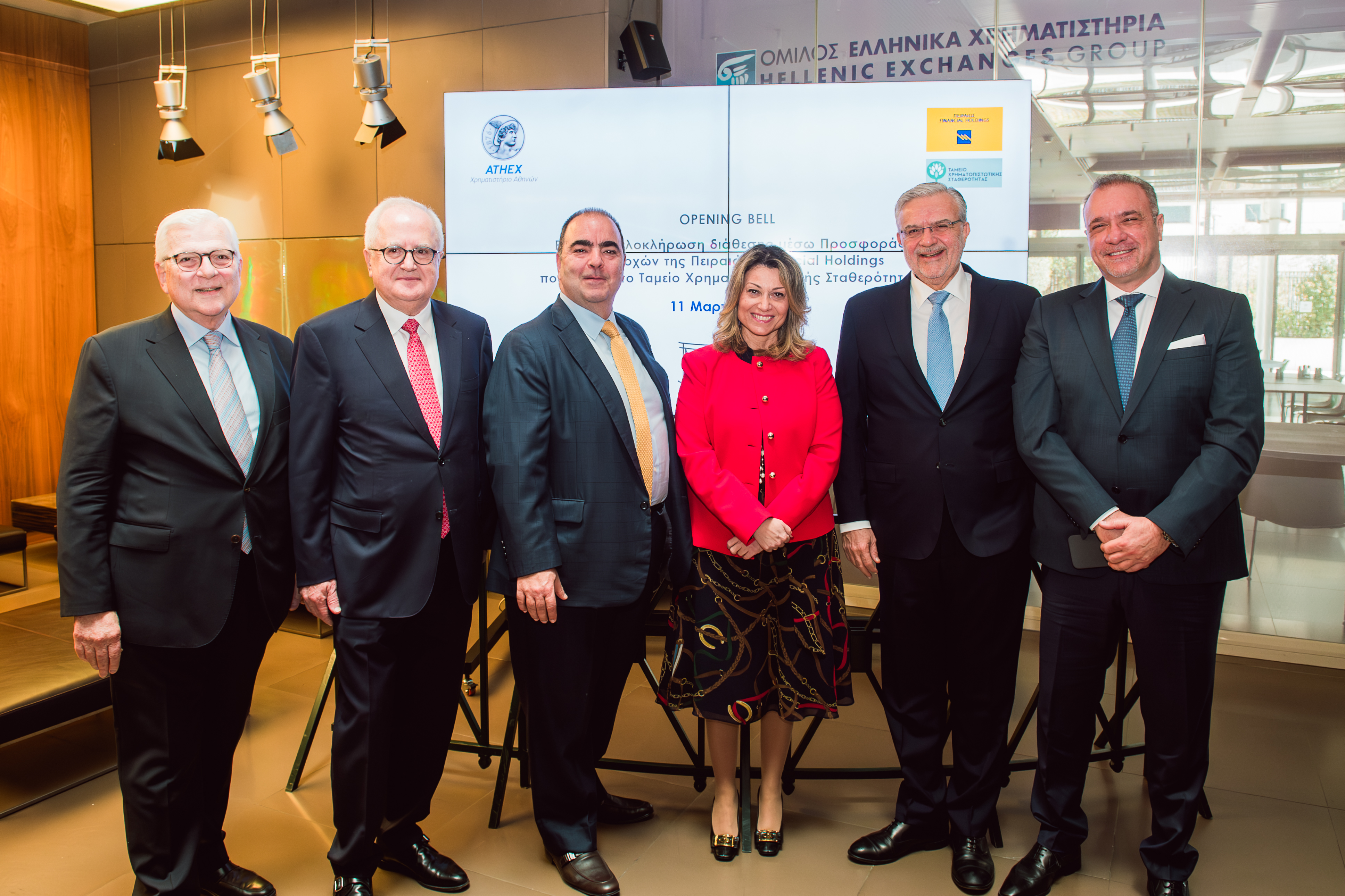 The Athens Stock Exchange welcomed today representatives from the management of Piraeus Financial Holdings, the Hellenic Financial Stability Fund (HFSF), and their underwriters, at the ceremonial opening of the session marking the successful completion of the sale of shares of Piraeus Financial Holdings held by the HFSF.