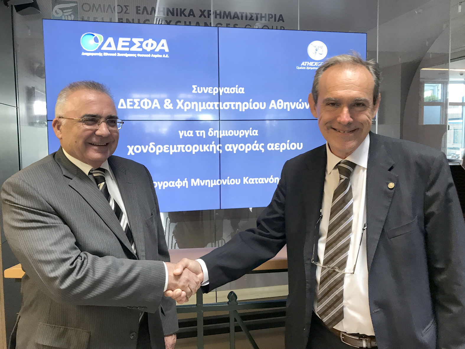Athens, September 14, 2017. On Thursday 14th of September 2017 a Memorandum of Understanding between the National Natural Gas System Operator (DESFA) and Athens Exchange Group (ATHEXGROUP) was signed.