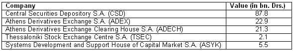 3.The shareholders are entitled to contribute all of the shares they hold in the companies ?Athens Derivatives Exchange S.A.?, ?Athens Derivatives Exchange Clearing House S.A.?, ?Thessaloniki Stock Exchange Centre S.A.? and ?Systems Development and Support House of Capital Market S.A?.