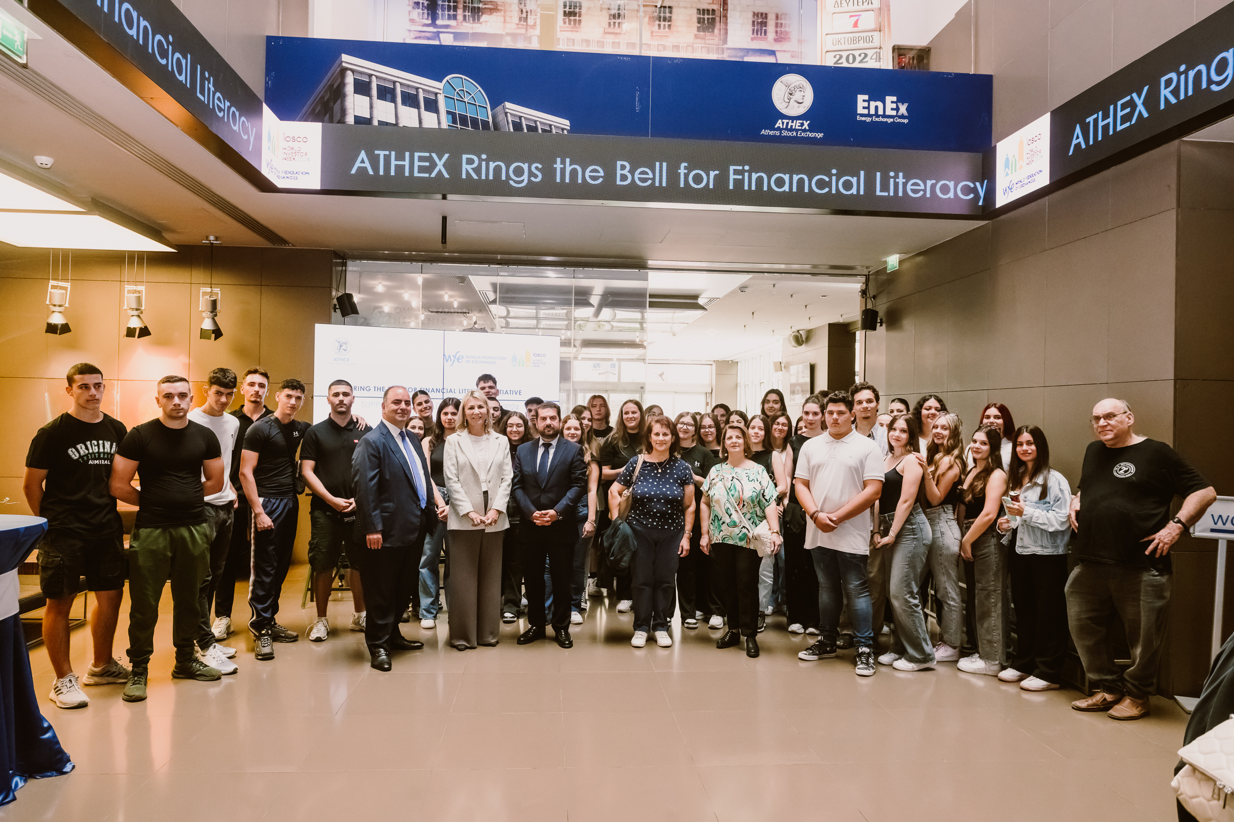 The Athens Stock Exchange marked the conclusion of its participation in the World Investor Week, an initiative jointly organized by the International Organization of Securities Commissions (IOSCO) and the World Federation of Exchanges (WFE), with a ceremonial market opening led by the Deputy Minister of Education, Religious Affairs, and Sports, responsible for Primary, Secondary, and Special Education, Ms. Zetta M. Makri.
