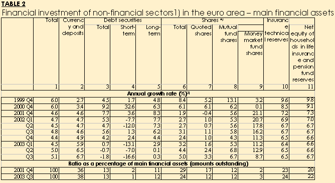 - The financial investment of the non-financial sectors remained broadly stable at 5.1% in the third quarter of 2003 (see Table 2).