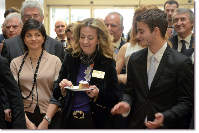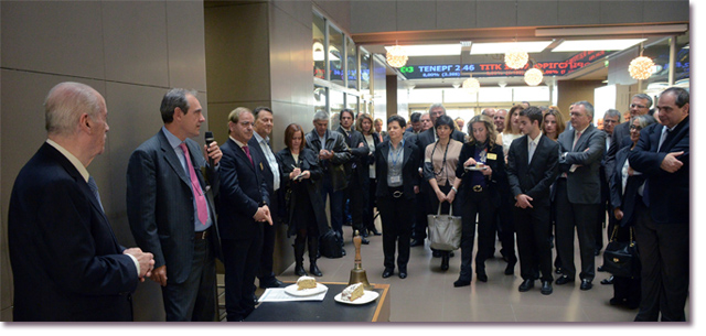 Mr Charalambos Gotsis, Chair of the Hellenic Capital Market Commission, Mr Theodoros Fessas, President of the Hellenic Federation of Enterprises (SEV), Mr Spyros Kyritsis, President of the Association of Members of ATHEX (SMEXA) , Mr Panagiotis Drakos, Chair of the Steering and Executive Committee of the Association of Listed Companies, Mr Theodoros Krintas, Vice-President of the Association of Institutional Investors, Ms Sofia Kounenaki-Efremoglou, Vice-Chair of the Board of the Hellenic Corporate Governance Council (HCGC) and Treasurer of the Board of SEV, Mr Giannis Polychroniou, President of the Association of Securities Brokerage Firms, Mr Panagiotis Alexopoulos, President of the Greek Association of Certified Analysts, and Mr Charalambos Egglezos, President of the Association of Internet Investors extended their warmest wishes for the New Year. Members of the entire stock exchange community of Greece attended the formal opening. According to Greek tradition a coin is placed in the New Year's cake and the person who finds it is considered blessed and lucky. This year the coin was found in the piece sliced for Ms Kounenaki-Efraimoglou.