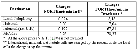 ALL of FORTHnet's subscribers enjoy apart from lower rates also a set of important advantages, such as free analytical billing at the end of each month and no monthly fixed charges. The cost of the 1789 prefix to OTE (GREEK PTT) is undertaken by FORTHnet while our customers are not charged with any extra activation costs or use of service.
