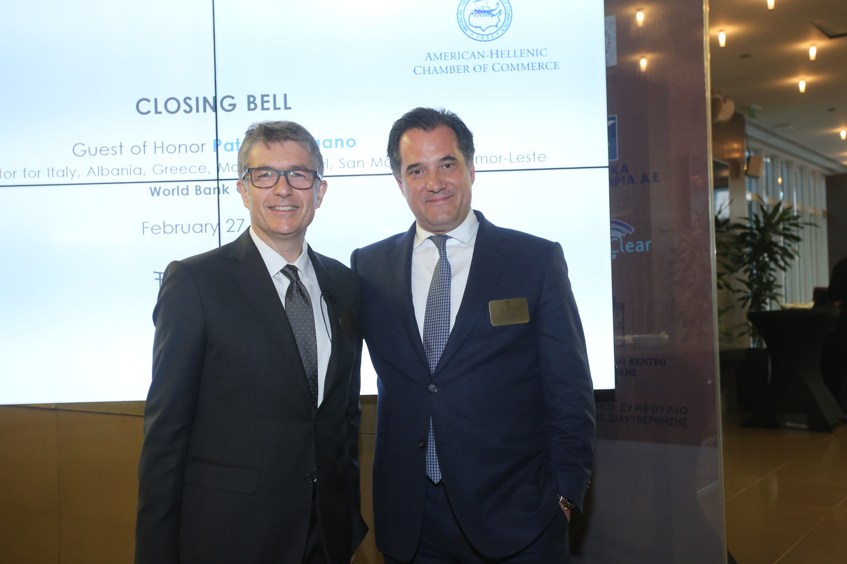 To Χρηματιστήριο Αθηνών και το Ελληνοαμερικανικό Επιμελητήριο υποδέχθηκαν χθες τον Patrizio Pagano, Executive Director for Italy,Albania,Greece,Malta,Portugal,San Marino and Timor-Leste World Bank Group