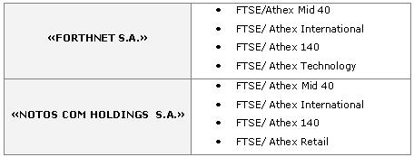 - "FORTHNET S.A." will remain in all the FTSE/Athex Indices with an increased investability weight of 50% from 30%