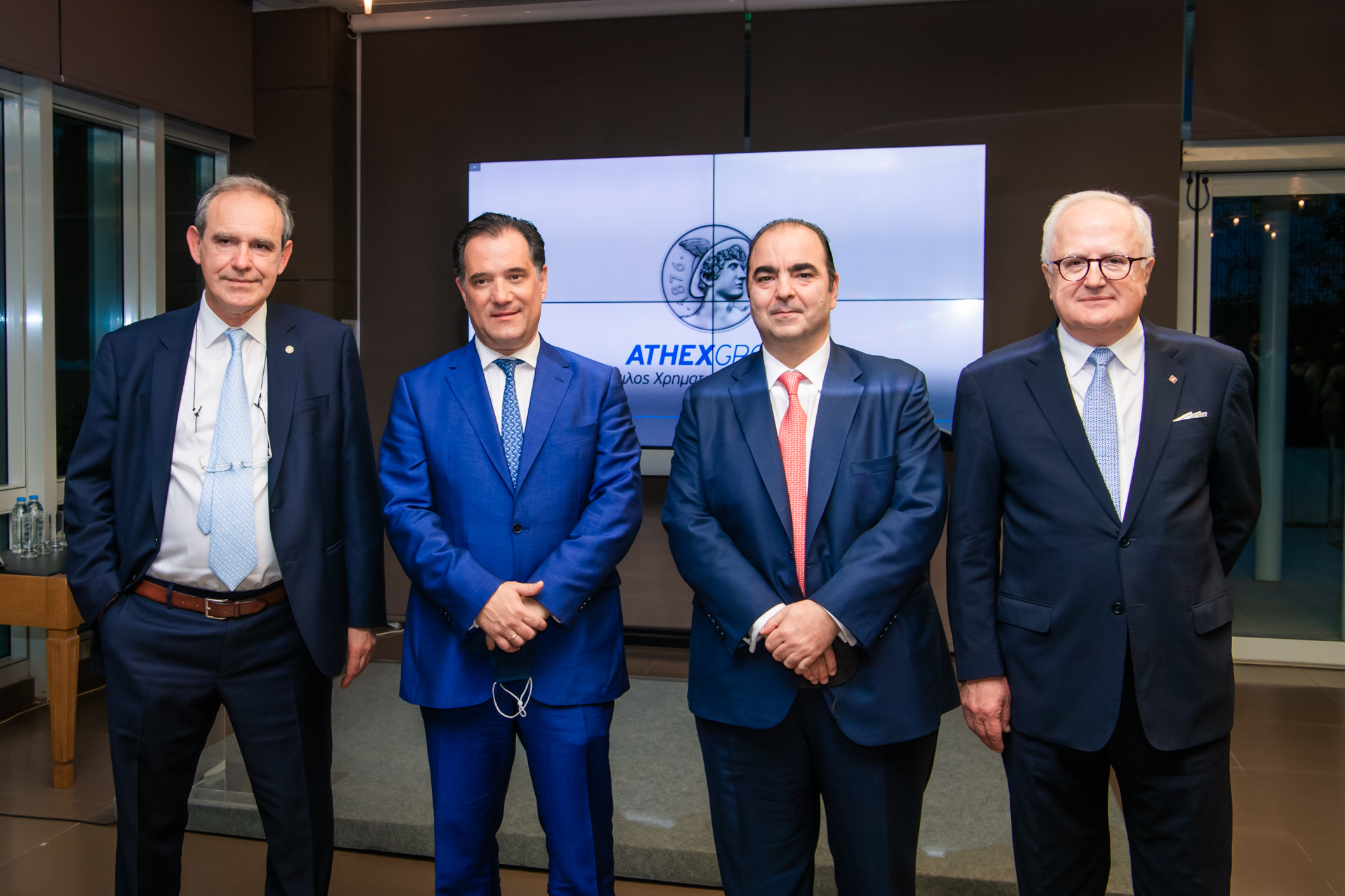 In the presence of ministers, senior banking executives, business representatives, and investors, an introductory event was held today in a friendly atmosphere, following the initiative of the Chairman of the Athens Exchange Group, Mr. George Handjinicolaou, to welcome the new CEO of the Athens Exchange Group, Mr. Yianos Kontopoulos, while also bidding farewell to the outgoing CEO, Mr. Sokratis Lazaridis.