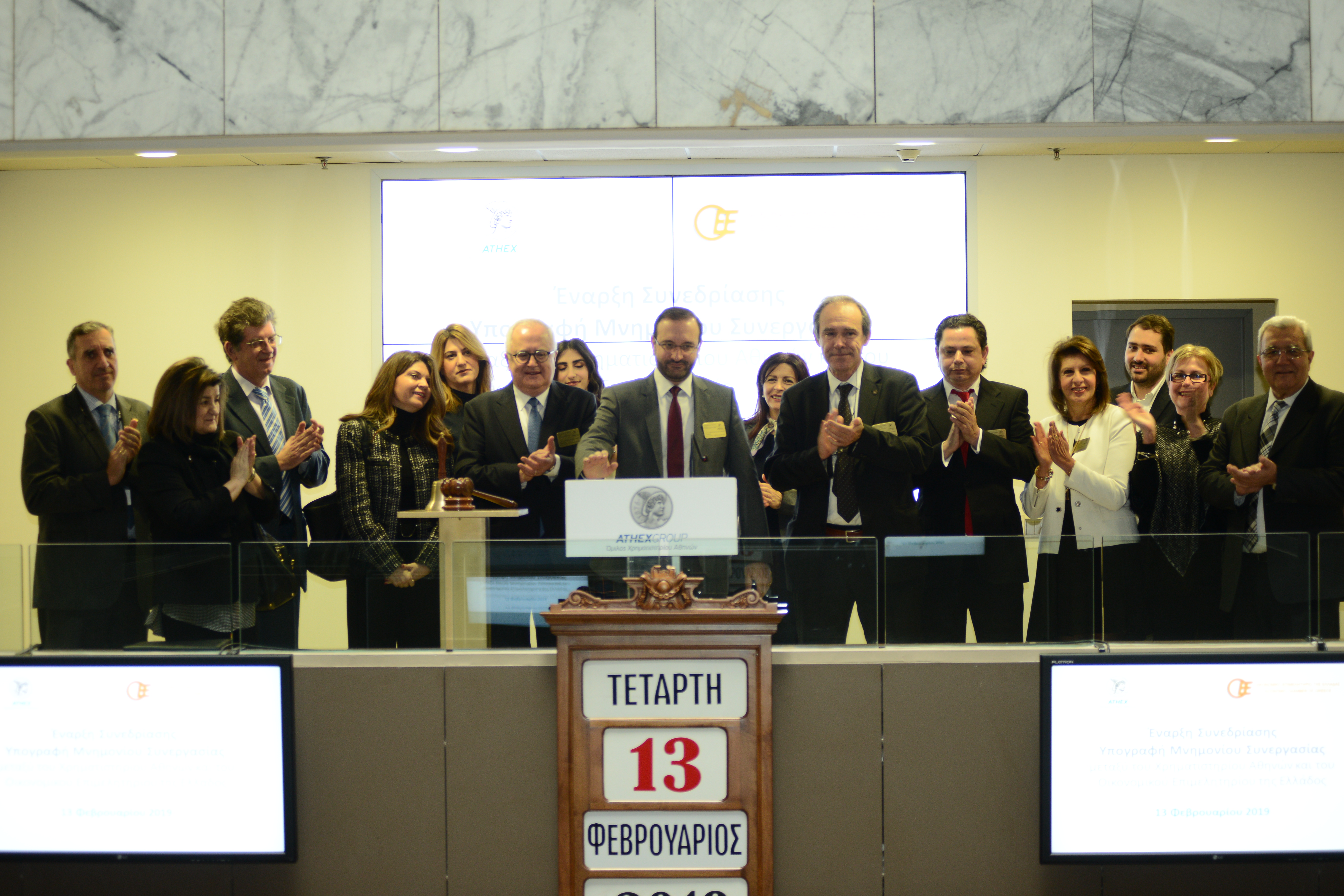 In the framework of the event, Mr. Kollias noted: "It was with great joy that we came here, as representatives of the Economic Chamber of Greece, to sign this memorandum of understanding. It is our firm belief that the Athens Stock Exchange can act as one of the key drivers of the Greek economy's return to sustainable growth, offering a source of financing to businesses that will allow them to grow soundly, reinforce their presence abroad and their extroversion, mainly by supporting their export and other activities. Once again, we are here to declare our steadfast commitment in doing our part towards this goal of paramount national importance".