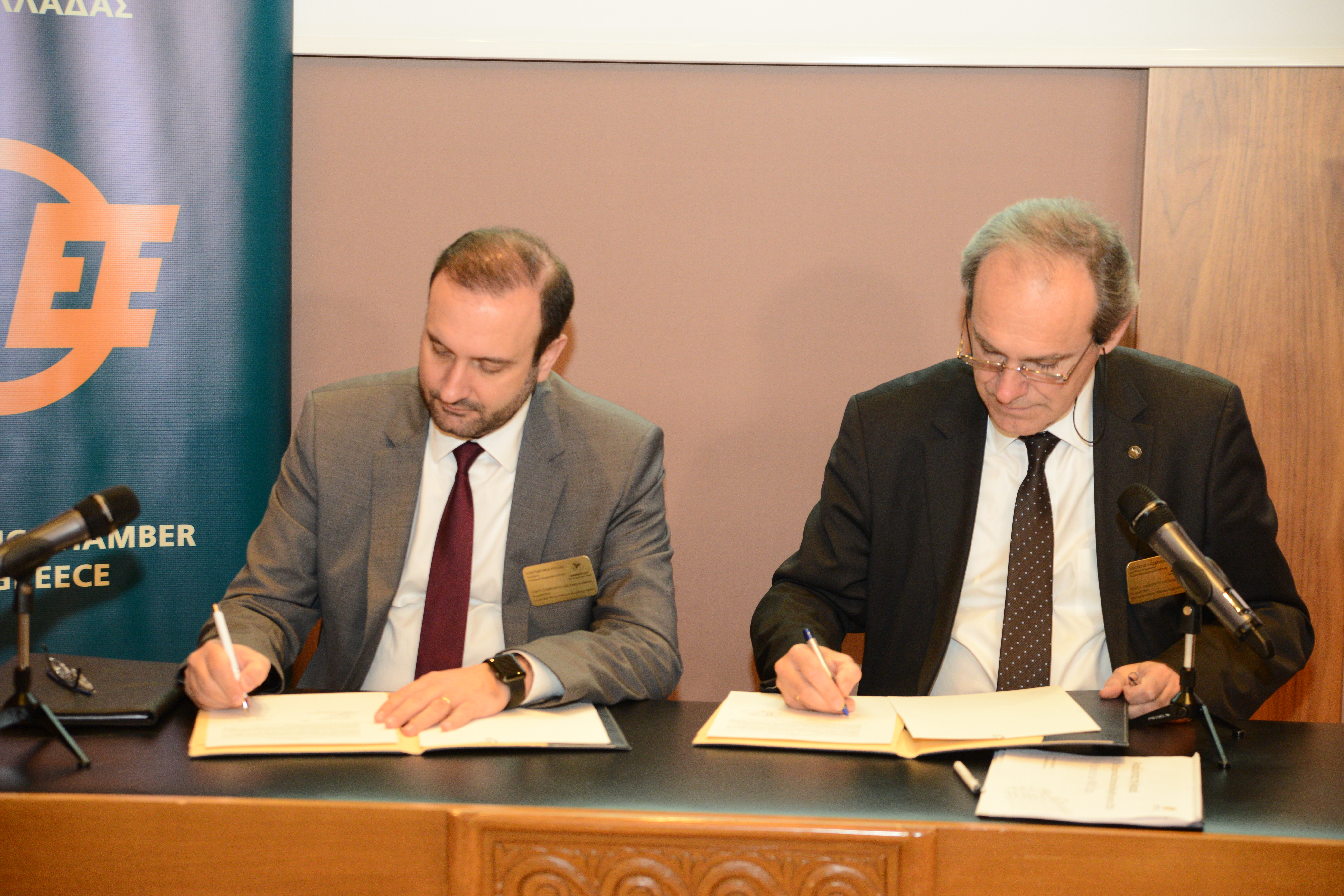 The MoU was signed by Mr. Sokrates Lazaridis, CEO of the Athens Exchange Group, and Mr. Konstantinos Kollias, President of the ECC, in the presence of board members of the ECC, the management and executive officers of ATHEX and members of the press.