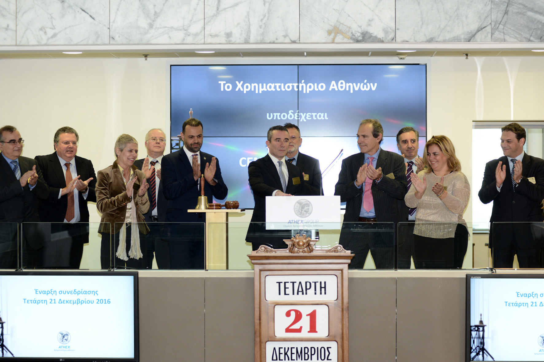 Athens Stock Exchange welcomed during today's Commencement of the meeting, the company Cenergy Holdings within the framework of negotiation of its shareholders, upon the completion of the cross-border merge by absorption, of the listed companies Corinth Pipeworks and Hellenic Cables.