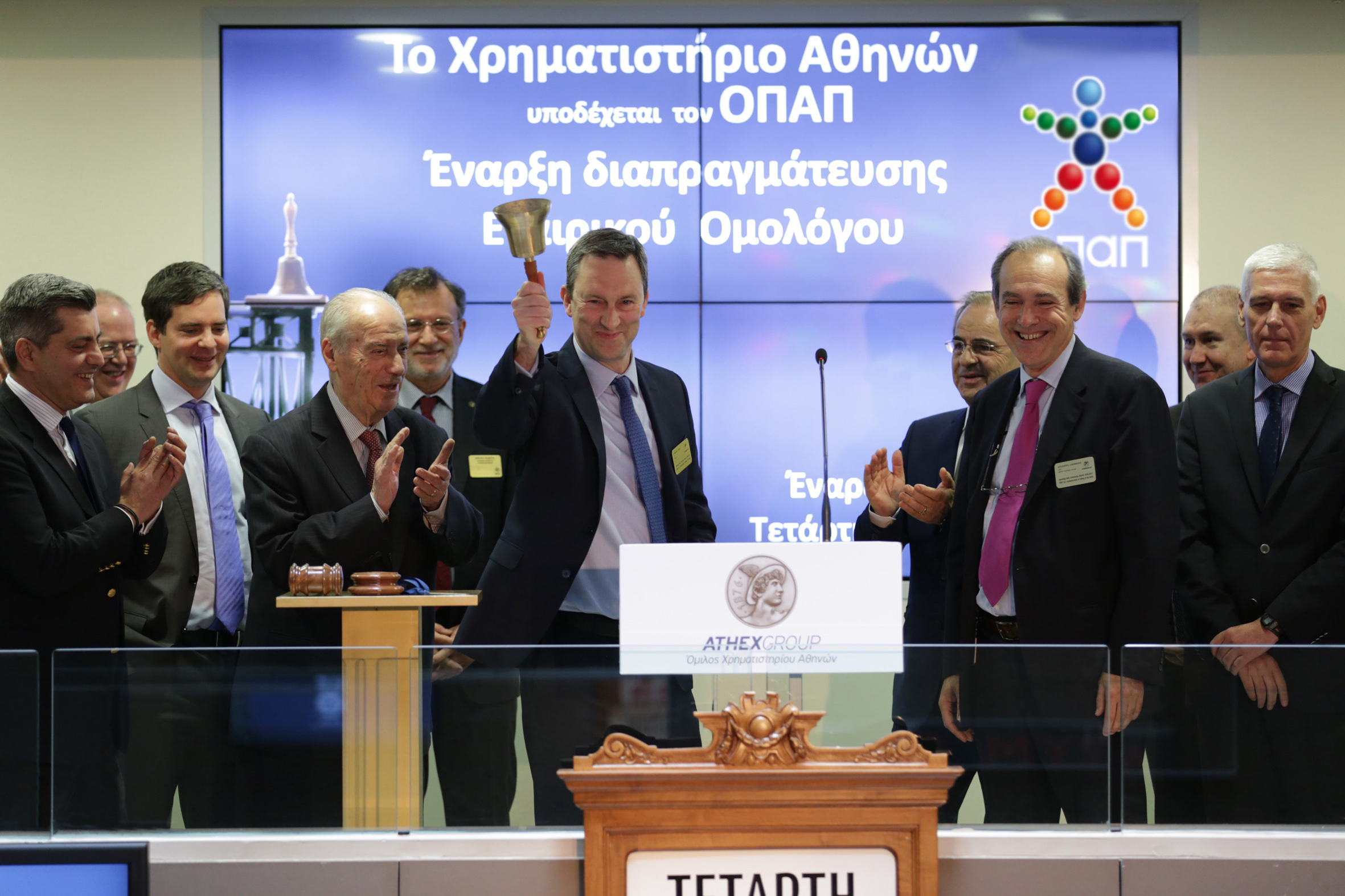 During the ceremony of the Opening of the trading session, the Chairman of the Group of Athens Stock Exchange Mr. Iakovos Georganas, pointed out: "In Exchange Market today we feel great satisfaction that OPAP Organization had this achievement under bad conditions. We congratulate the company, the contractors, the securities companies and especially the investors.