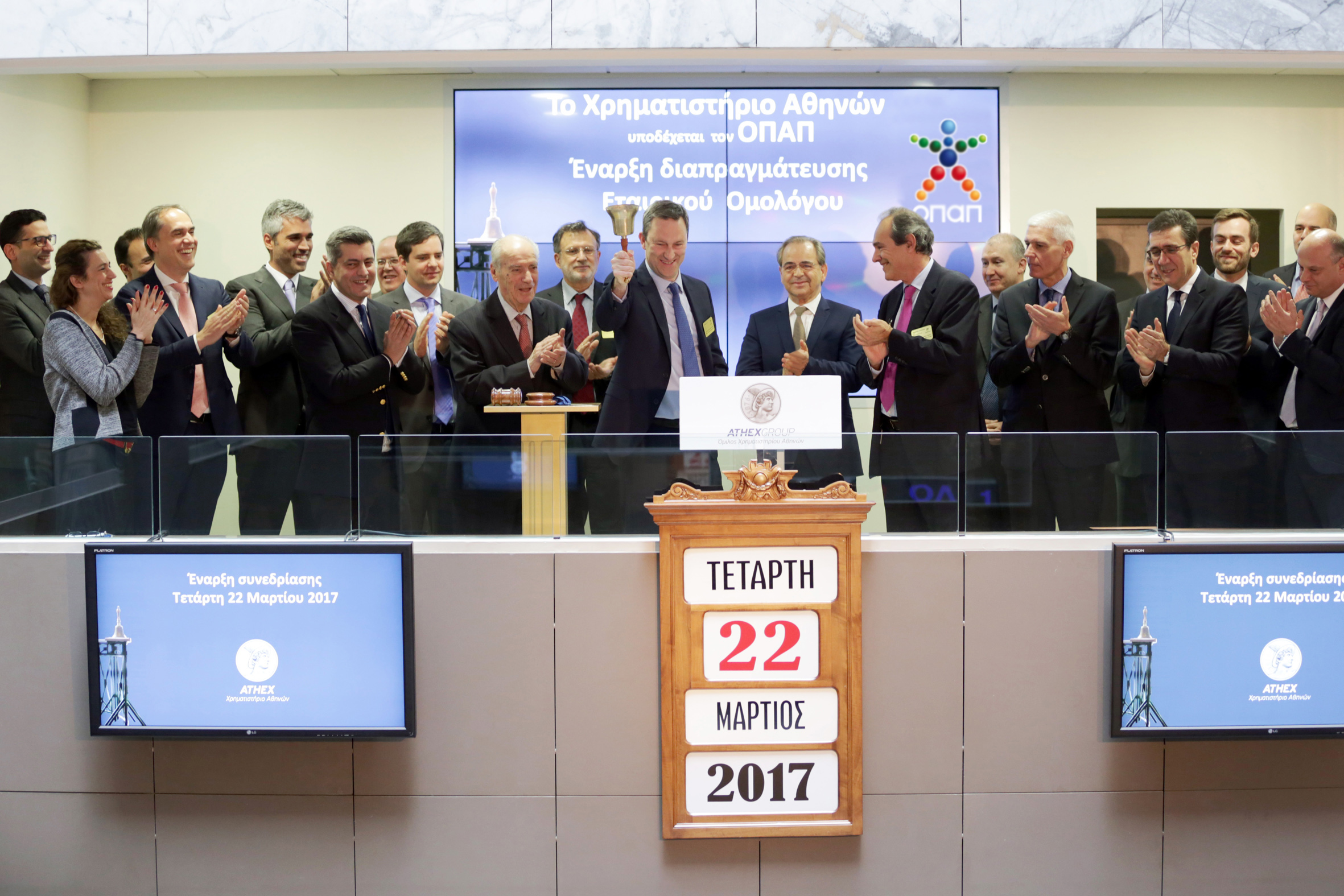 The Athens Stock Exchange welcomed OPAP, in the ceremony of the Opening of the trading session of Athens Stock Exchange on Thursday, March 22, 2017, on the occasion of listing to trading in the Main Market of Athens Stock Exchange, of the Corporate Bond.