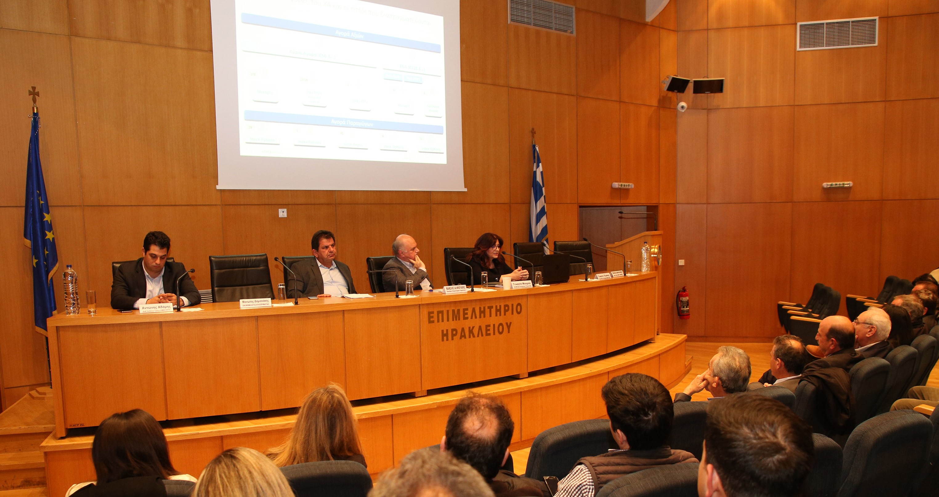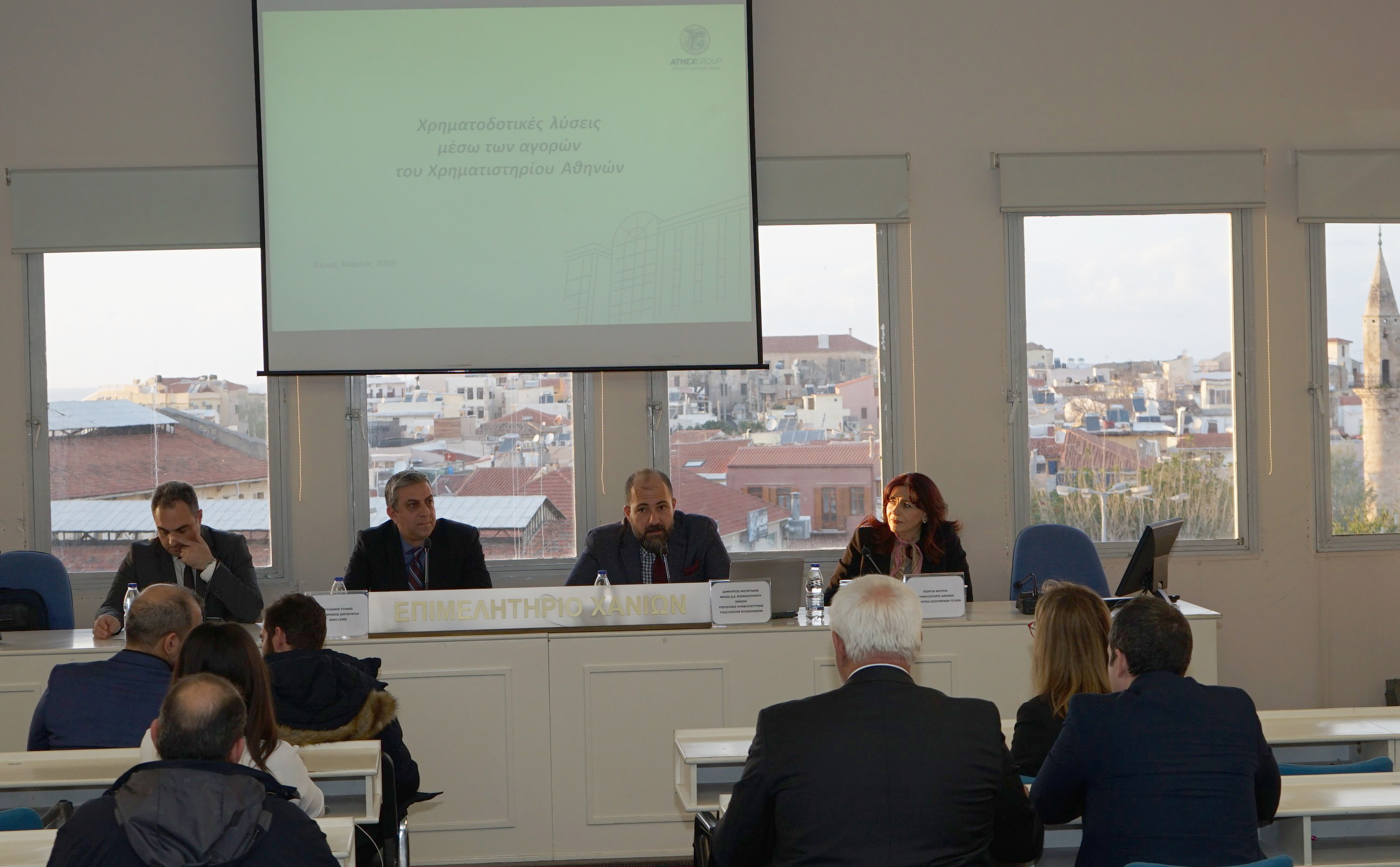 The event that was held in Heraklion was addressed and coordinated by the President of the Chamber, Mr. Manolis Alifierakis, whereas the event held in Chania was addressed by Mr. Antonis Rokaksi, president of the respective Chamber, and was coordinated by the Chamber's Head of Business Consultancy, Mr. Dimitris Mountakis. The presentation on behalf of the Athens Stock Exchange was made by Ms. Georgia Mourla, Director of Listings Division.