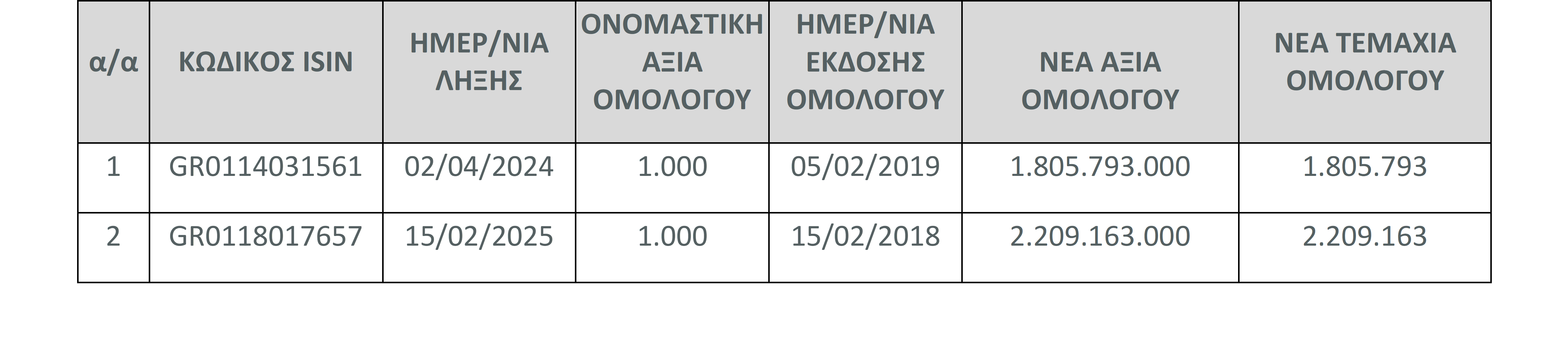 - Cancellation and deletion of a number of bonds from each of the following listed Bonds of the Hellenic Republic, according to the following table: