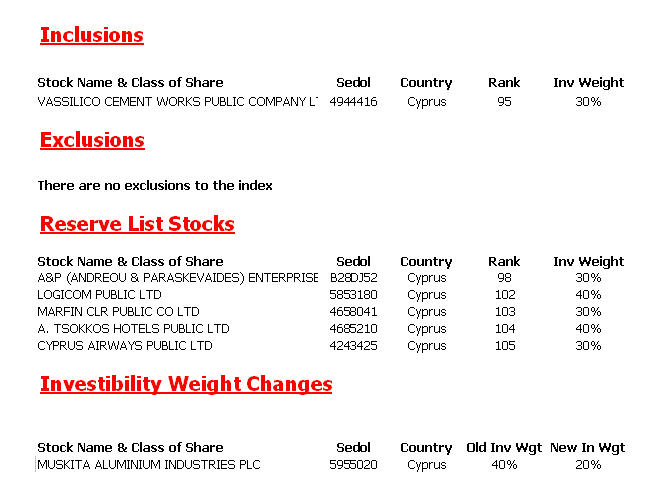 Semi-Annual Review of the Composition of the FTSE/Med 100 Index