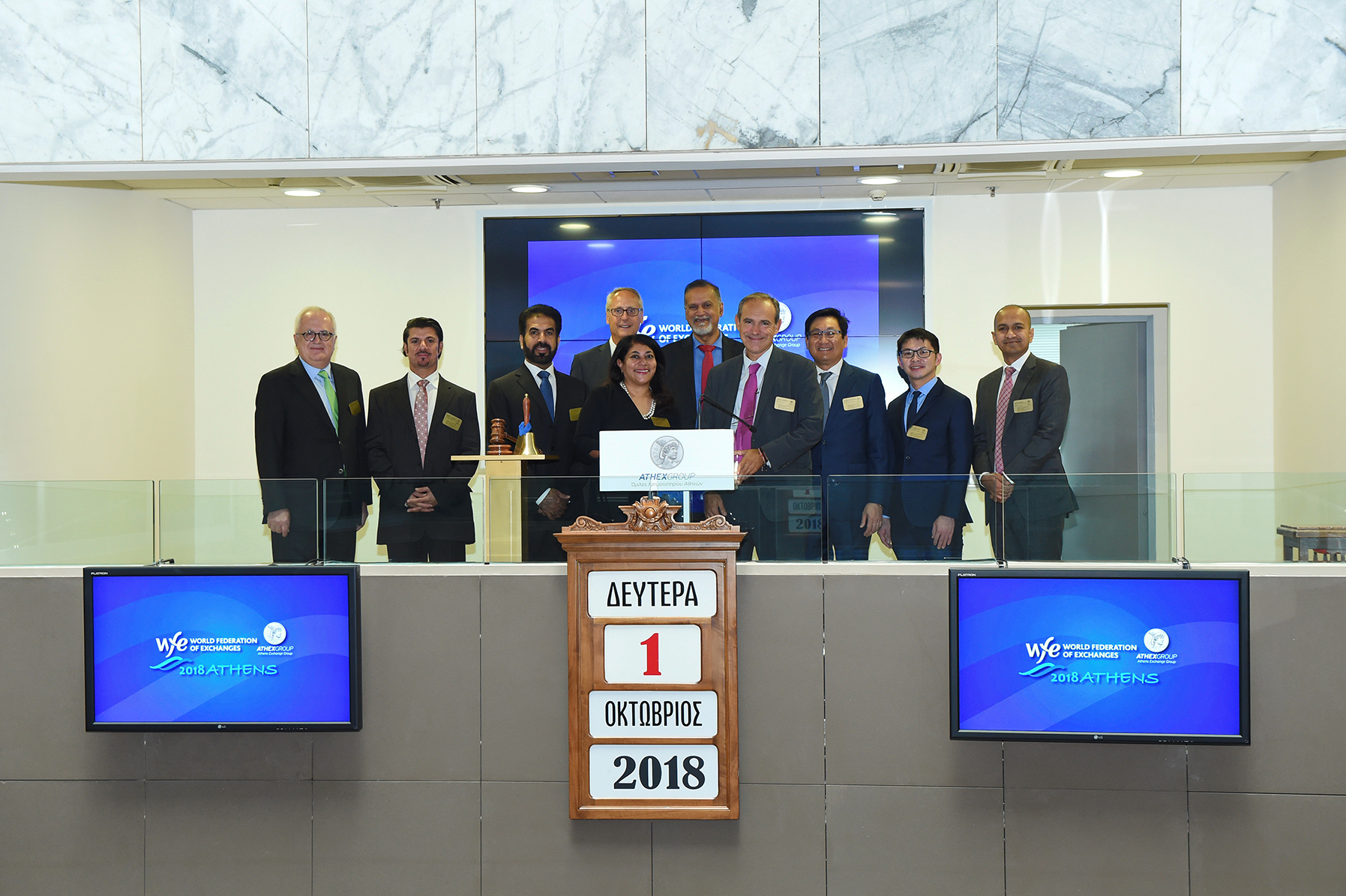 Athens, Monday 1 October 2018 - The World Federation of Exchanges ("WFE"), the global industry group for exchanges and CCPs, and Athens Stock Exchange, today rang the opening bell at the exchange to formally launch the WFE's General Assembly & Annual Meeting (2-4 October, Athens).