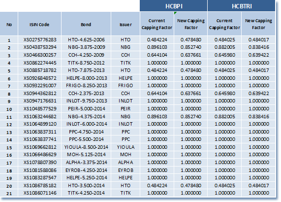Athens Stock Exchange announces the new capping factors of the bonds participating in the composition of the indices according to Index Ground Rules.