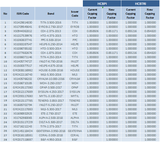 Changes in the Composition of the Hellenic Corporate Bond Indices