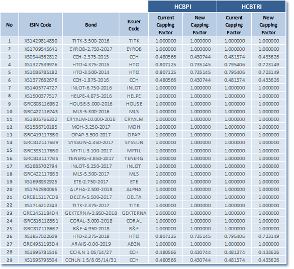 Changes in the composition of the Hellenic Corporate Bond Indices