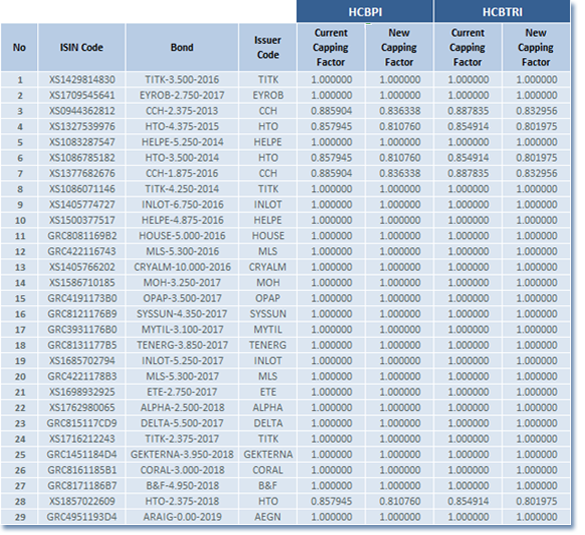 Athens Stock Exchange announces changes in the composition of the «Hellenic Corporate Bond» indices according to Ground Rules.