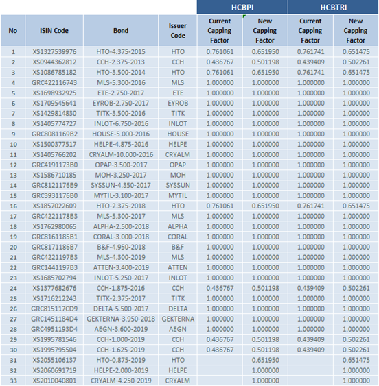 Athens Stock Exchange announces the changes in the composition of the «Hellenic Corporate Bond» indices according to Ground Rules.