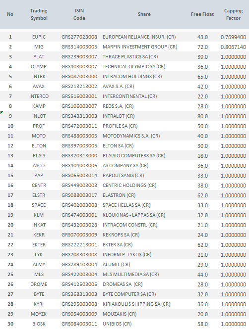 The Athens Stock Exchange announce the composition and characteristics of the new «ATHEX Select Index Plus» and «ATHEX Select Index» the calculation of which will start from the session of Monday March 23 with starting Index level of 2,000.