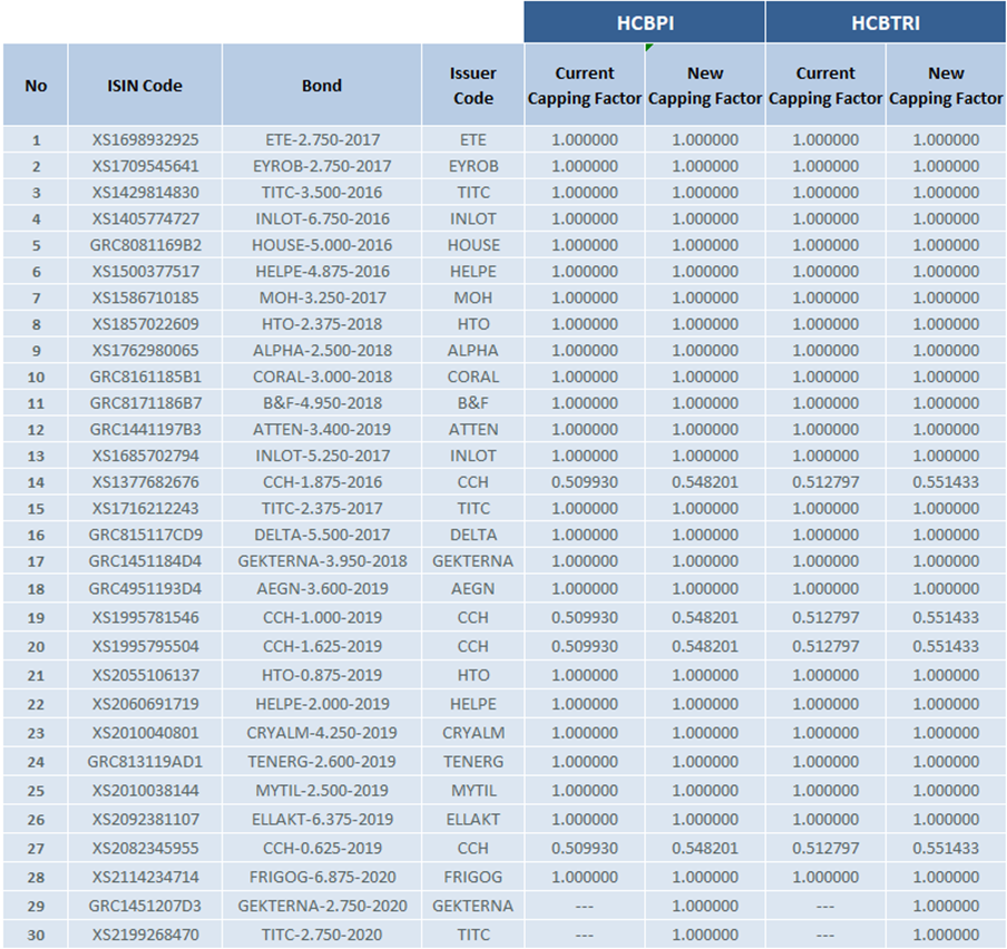Athens Stock Exchange announces the changes in the composition of the «Hellenic Corporate Bond» indices according to index Ground Rules.