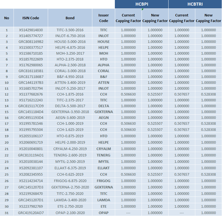 Athens Stock Exchange announces the changes in the composition of the «Hellenic Corporate Bond» indices according to index Ground Rules.