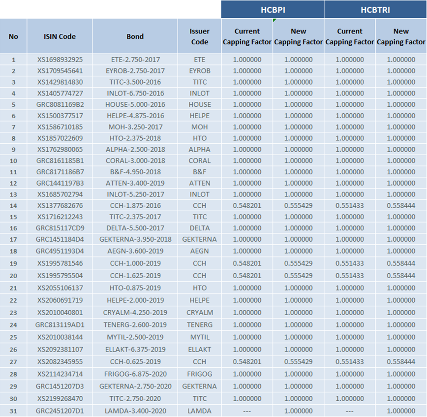 Athens Stock Exchange announces the changes in the composition of the «Hellenic Corporate Bond» indices according to index Ground Rules.
