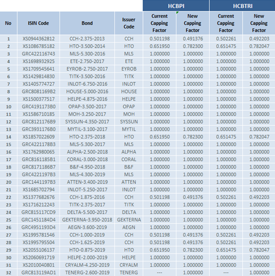 Changes in the composition of the Hellenic Corporate Bond Indices