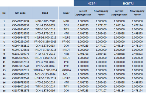 Athens Stock Exchange announces the changes in the composition of Hellenic Corporate Bond Indices and the new capping factors of the bonds participating in the composition of the indices according to Index Ground Rules.