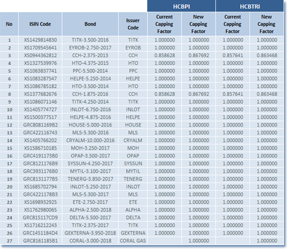 Changes in the composition of the Hellenic Corporate Bond Indices