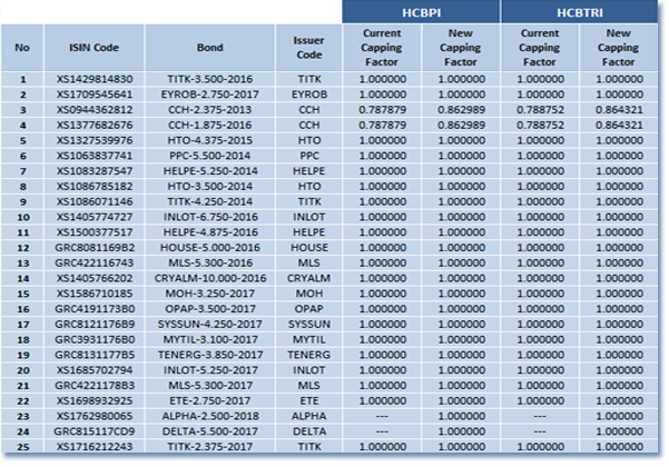 Changes in the composition of the Hellenic Corporate Bond Indices