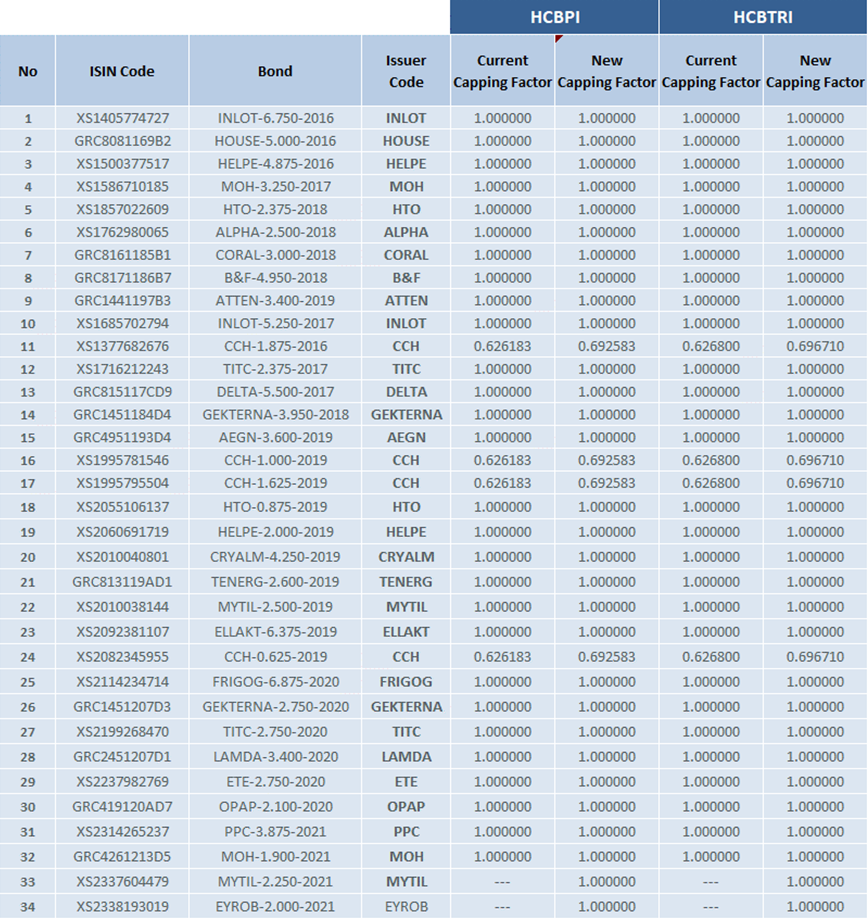 Athens Stock Exchange announces the changes in the composition of the «Hellenic Corporate Bond Indices» according to index Ground Rules.