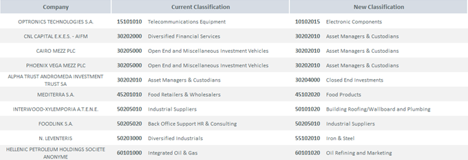 The Athens Stock Exchange and FTSE Russell announces the following quarterly classification changes according to the FTSE Russell | Industry Classification Benchmark (ICB):