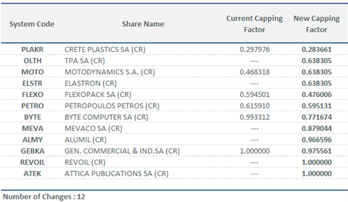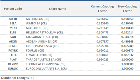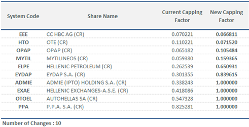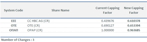 | Calculation of New Capping Factors for FTSE/ATHEX Index Series | |||