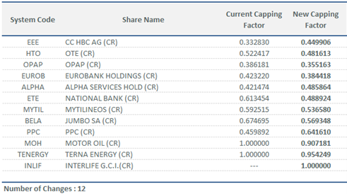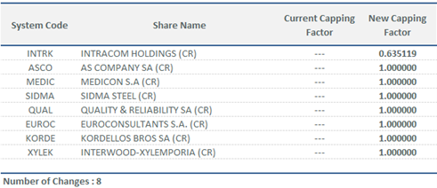 | Capping Factors for ATHEX Index Series | |||