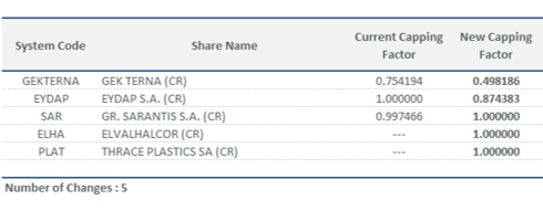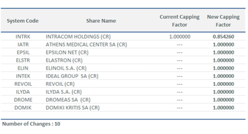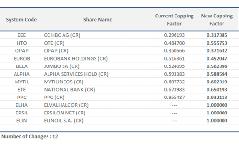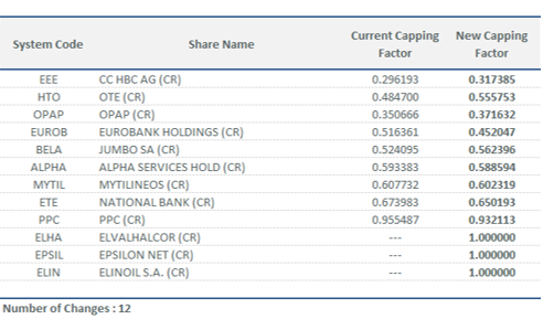 The Athens Stock Exchange announce the new Capping Factors of the shares in the composition of the ΑΤΗΕΧ Index Series.