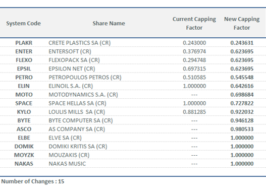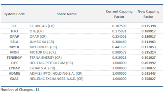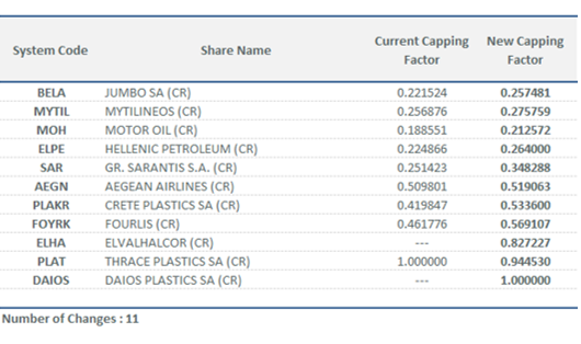 | New Capping Factors for FTSE/ATHEX Index Series | |||