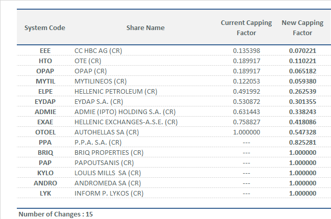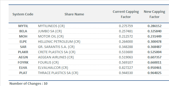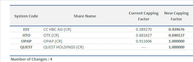 Calculation of New Capping Factors for FTSE/ATHEX Index Series